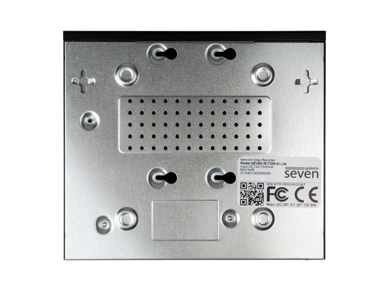 SEVEN IR-7209-AI — це сучасний мережевий відеореєстратор, призначений для запису, зберігання та обробки відеопотоків з IP-камер. Пристрій отримує зображення по мережі і зберігає їх на внутрішній жорсткий диск для подальшого перегляду та аналізу. Відеореєстратор підтримує установку одного SATA жорсткого диска ємністю до 8 ТБ включно, що забезпечує надійне і довготривале зберігання даних.