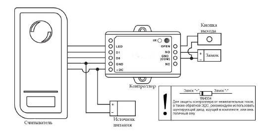 Схема підключення контролеру системи контролю доступу SEVEN CR-770