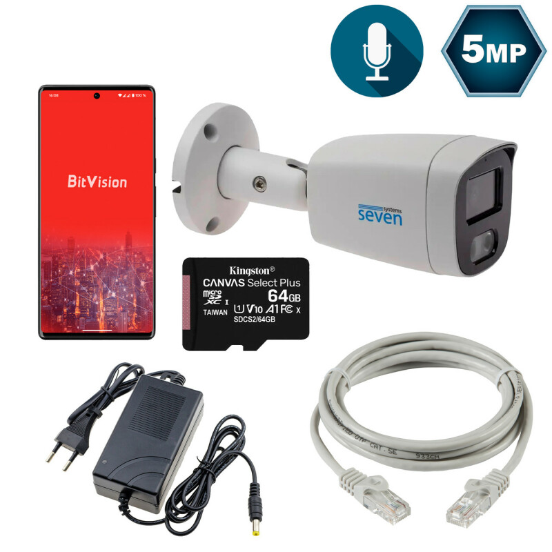 Комплект SEVEN KS-7221O-5MP готовий для самостійної установки, так як включає в себе всі необхідні компоненти для створення повноцінної системи відеоспостереження.