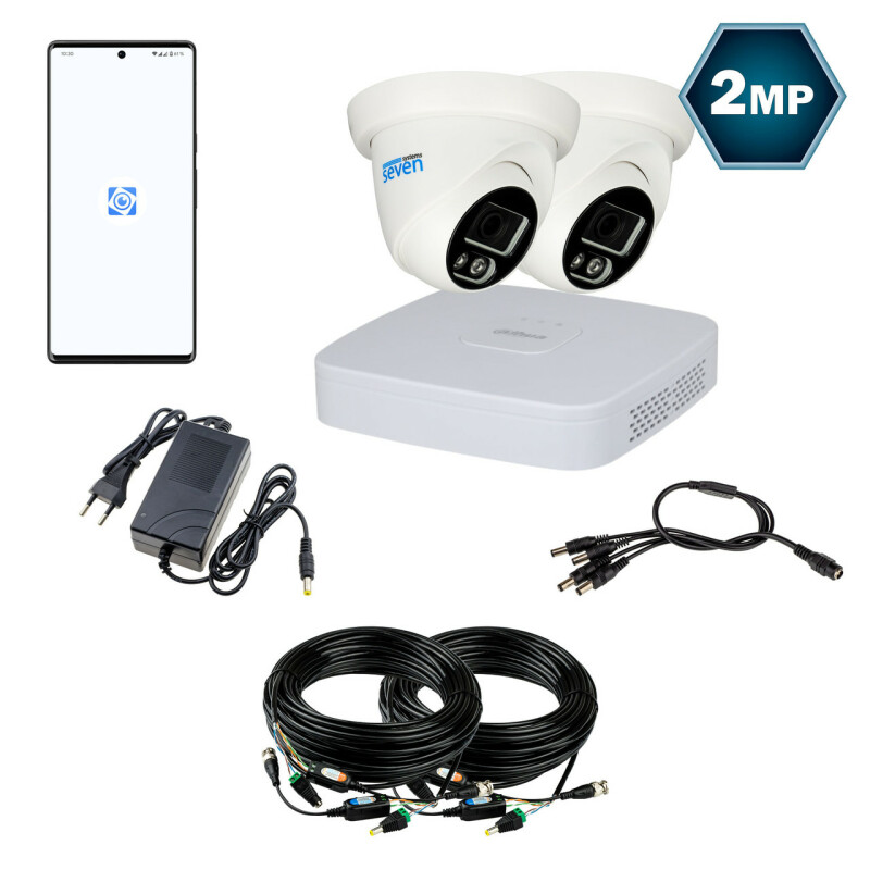 Для під'єднання камер SEVEN до відеореєстратора Dahua в комплекті передбачено кабель кручена пара з розрахунку 20 м на кожну камеру та комплекти роз'ємів живлення і спеціальних прийомопередавачів. Для зручності користувач може самостійно визначати довжину кожного кабелю для під'єднання відеокамери з огляду на особливості його об'єкта. На кабелі з боку відеокамери монтується прийомопередавач і роз'єм живлення "тато", а з боку відеореєстратора - прийомопередавач і роз'єм живлення "мама". За допомогою такого кабелю до відеокамери під'єднують BNC роз'єм прийомопередавача для передавання відео та конектор живлення "тато" для подачі на камеру живлення 12В. Другий кінець кабелю під'єднується роз'ємом BNC до відеореєстратора і роз'ємом живлення "мама" до блоку живлення. Досить просто під'єднати камеру до живлення і відеореєстратора, після чого він визначить камеру і покаже з неї зображення.