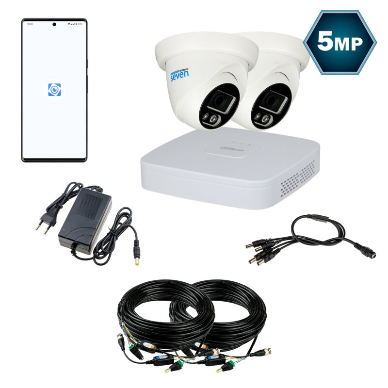 Для під'єднання камер SEVEN до відеореєстратора Dahua в комплекті передбачено кабель кручена пара з розрахунку 20 м на кожну камеру та комплекти роз'ємів живлення і спеціальних прийомопередавачів. Для зручності користувач може самостійно визначати довжину кожного кабелю для під'єднання відеокамери з огляду на особливості його об'єкта. На кабелі з боку відеокамери монтується прийомопередавач і роз'єм живлення "тато", а з боку відеореєстратора - прийомопередавач і роз'єм живлення "мама". За допомогою такого кабелю до відеокамери під'єднують BNC роз'єм прийомопередавача для передавання відео та конектор живлення "тато" для подачі на камеру живлення 12В. Другий кінець кабелю під'єднується роз'ємом BNC до відеореєстратора і роз'ємом живлення "мама" до блоку живлення. Досить просто під'єднати камеру до живлення і відеореєстратора, після чого він визначить камеру і покаже з неї зображення.