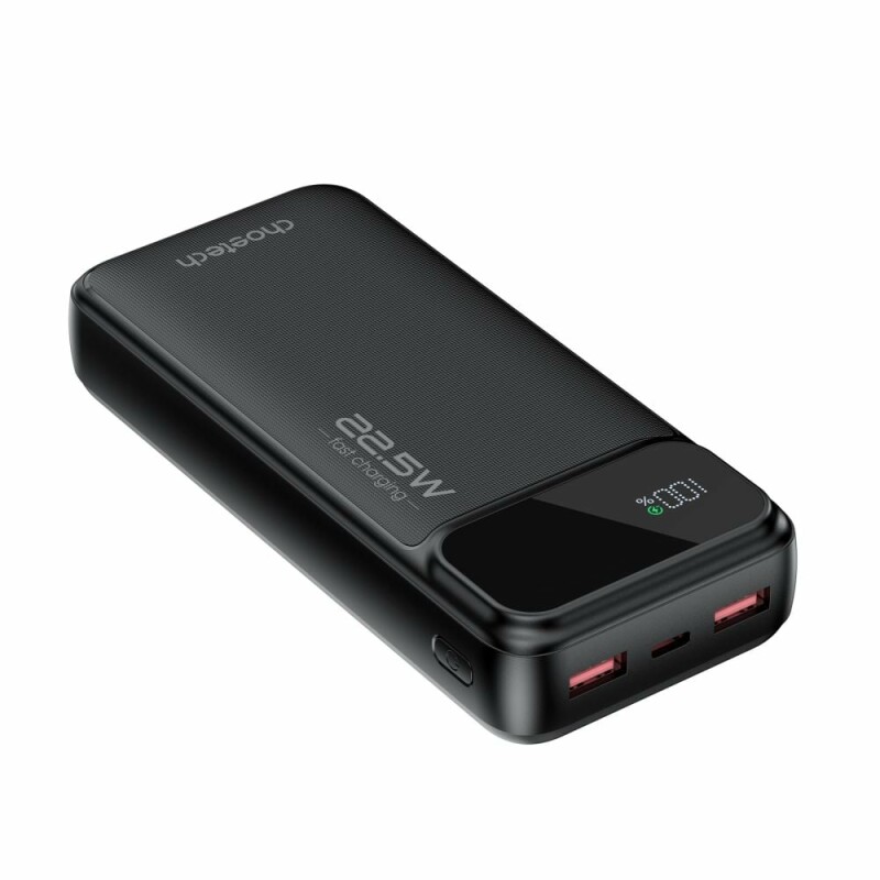 Повербанк Choetech B729 з ємністю батареї 20000 мАг, літій-полімерною технологією, інтерфейси: вхід/вихід Type-C, вхід 5V/2.4A, 9V/2A, 12V/1.5 (18 Вт макс.), вихід: 5V/3A, 9V/2.22A, 12V/1.67A (20 Вт макс.); виходи: USB-A1/A2 5V/3A, 10V/2.25A, 12V/1.5A (22.5 Вт макс.). Підтримує швидкісне заряджання за протоколами QC3.0/QC2.0, PD3.0/PD2.0, AFC, FCP. Двосторонній порт Type-C забезпечує як заряджання пристроїв, так і самого повербанка. Оснащений LED-дисплеєм для відображення стану заряду. У комплекті – кабель Type-C to Type-C.