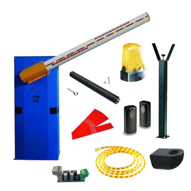 Комплект шлагбаума G5000X LED UKRAINIAN EDITION з шириною проїзду до 6.5 м. До комплекту входять: стійка шлагбаума з вбудованою панеллю керування, кругла стріла діаметром 100 мм і довжиною 6.85 м, 2 пружини балансування діаметром 50 мм, нерухома стійка під стрілу, дюралайт LED довжиною 13 м червоно-зелений з блоком для підключення, 10 наклейок на стрілу, комплект фотоелементів (передавач і приймач), сигнальна лампа 24 В і кріплення для сигнальної лампи.