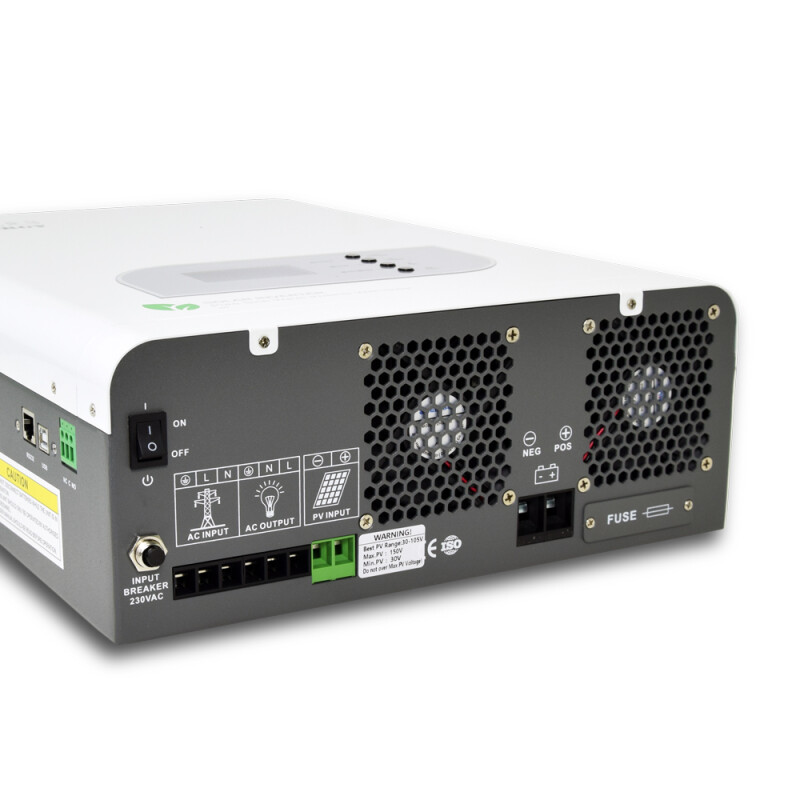 Багатофункціональний інвертор/зарядний пристрій, в якому поєднуються функції інвертора, сонячного зарядного пристрою та зарядного пристрою акумулятора, щоб надати користувачам компактне джерело безперебійної подачі живлення.