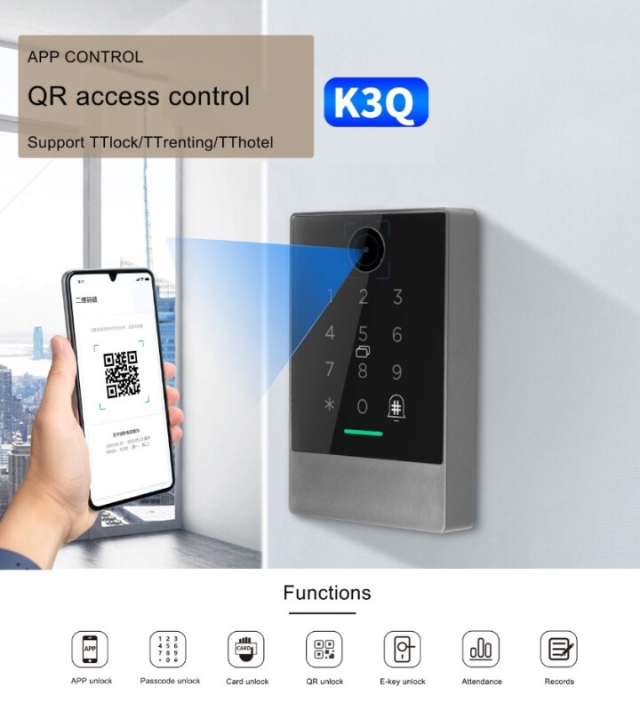 Контролер доступу K-3Q — це інноваційний пристрій для організації проходу за QR-кодом, RFID-карткою, MIFARE, паролем або через мобільний застосунок TTLOCK. Ідеальне рішення для офісів, бізнес-центрів, житлових комплексів, коворкінгів, готелів, паркінгів, складів та будь-яких об’єктів з високим потоком відвідувачів. Завдяки інтеграції з мобільним застосунком, простому монтажу та мультиформатній підтримці цей контролер забезпечує не лише надійний захист, а й максимальний комфорт керування.