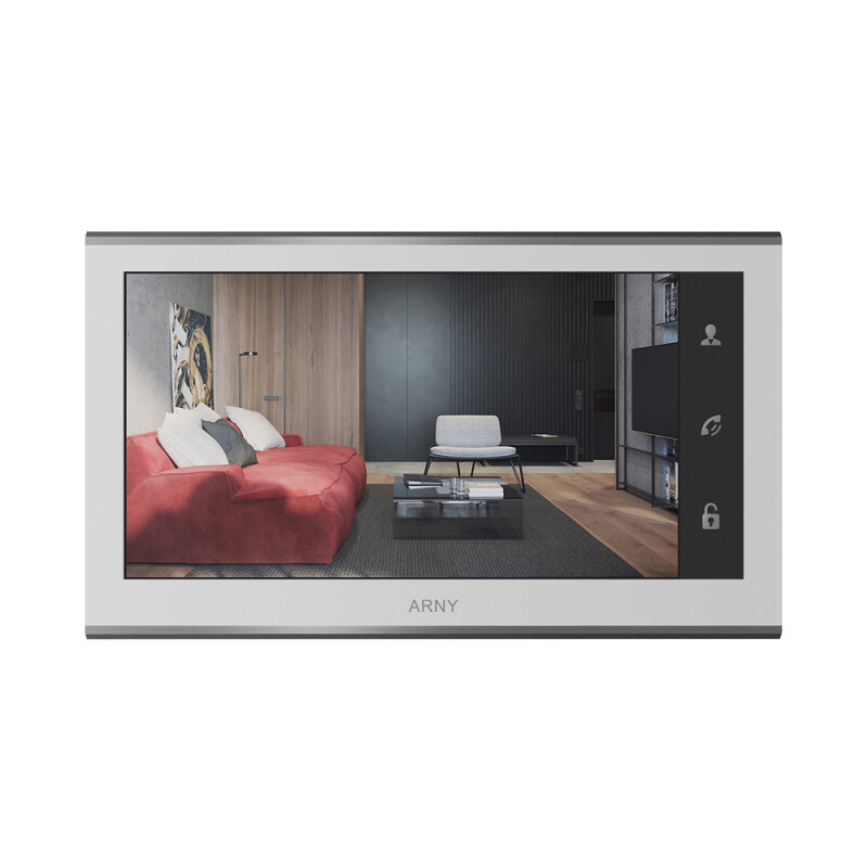 Arny AVD-730 (2 Mpx) також пропонує можливість розширення системи шляхом підключення до трьох додаткових моніторів Arny. Це дає змогу вам приймати виклики та відчиняти двері з різних приміщень, забезпечуючи зручність і гнучкість. Крім того, ви зможете використовувати функцію внутрішніх переговорів між пристроями та переадресації зовнішніх викликів.