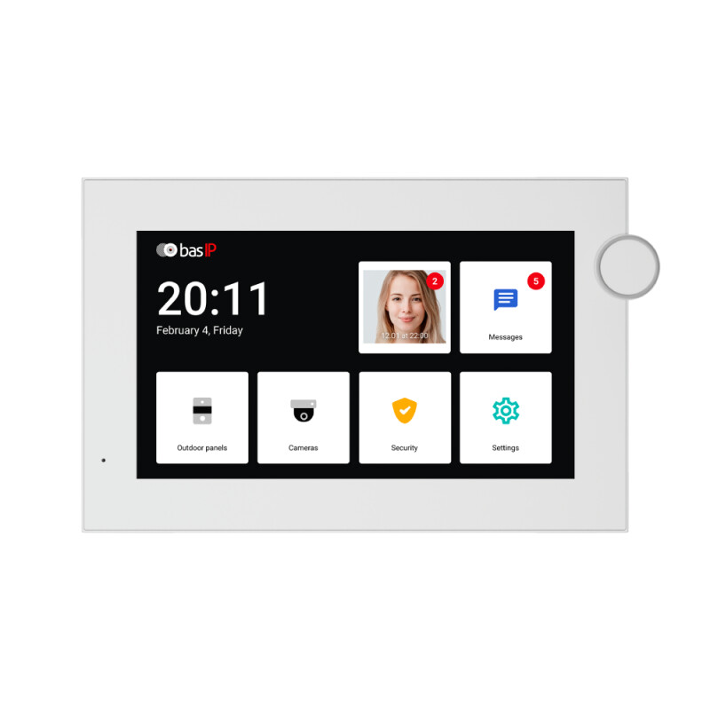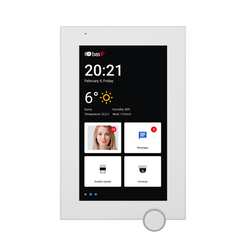 IP-відеодомофон підтримує віддалене управління через безплатний мобільний застосунок BAS-IP Intercom. Користувач отримує push-повідомлення про виклики з панелі, спрацьовування сигналізації та інші події. Також у застосунку можна переглядати архів викликів і зберігати фотознімки з камер панелей виклику.