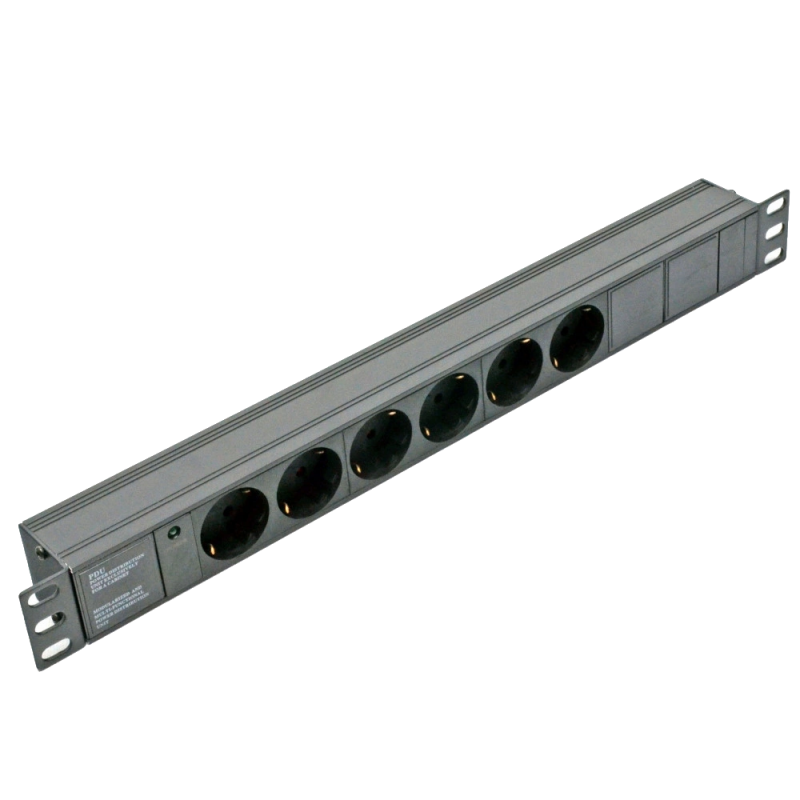 Блок на 6 роз. нім. станд. 10А без шнура з індикатором 19" 1U