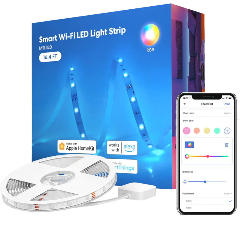 ● Керування голосом та програмою: інтелектуальні світлові стрічки сумісні з Apple HomeKit/Alexa/Google Assistant/SmartThings, ви можете керувати ними за допомогою простих голосових команд. І вам буде зручніше включати та вимикати розумні світлодіодні ліхтарі, регулювати яскравість або змінювати кольори за допомогою програми Meross або Home.