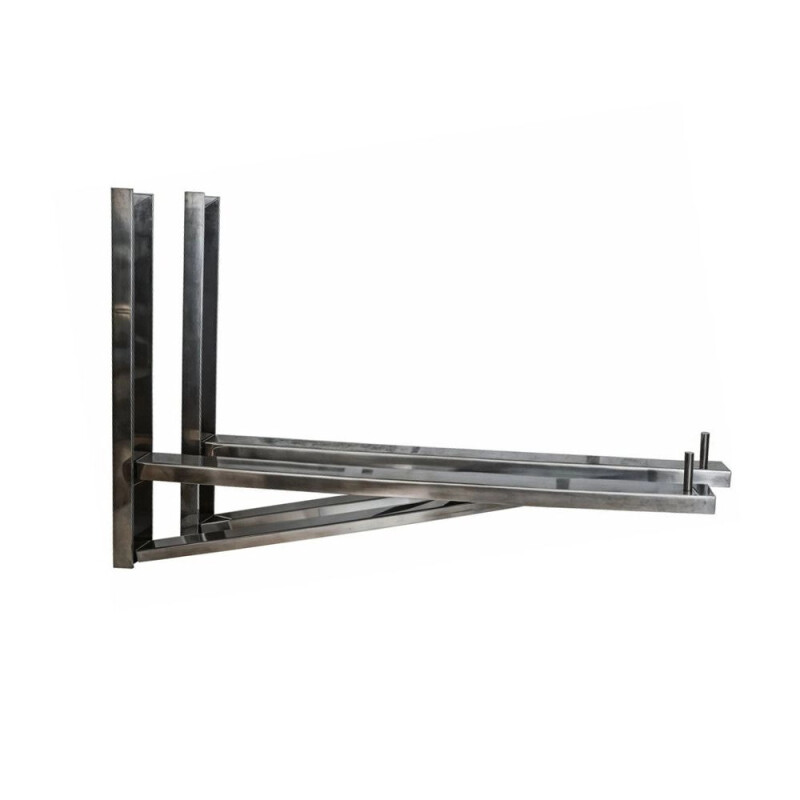 Кронштейн K-2n з нержавіючої сталі — надійне рішення для встановлення зовнішнього блоку кондиціонера на фасаді будівлі. Зварна конструкція з міцного П-подібного профілю забезпечує стабільну підтримку блоку. З товщиною металу 1.5 мм і розмірами 500 x 330 мм, цей кронштейн здатний витримати вагу до 65 кг.