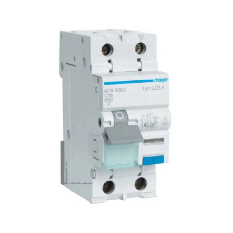 Диференціальний автоматичний вимикач Hager ADA970D встановлюється в електричних щитах на стандартну напрямну DIN-рейку і може використовуватися як для побутових, так і для промислових цілей. Він швидко реагує на перевантаження і короткі замикання, автоматично вимикаючи електричний ланцюг для запобігання загоряння і пошкодження обладнання. Він також може працювати як вимикач для ланцюгів навантаження.