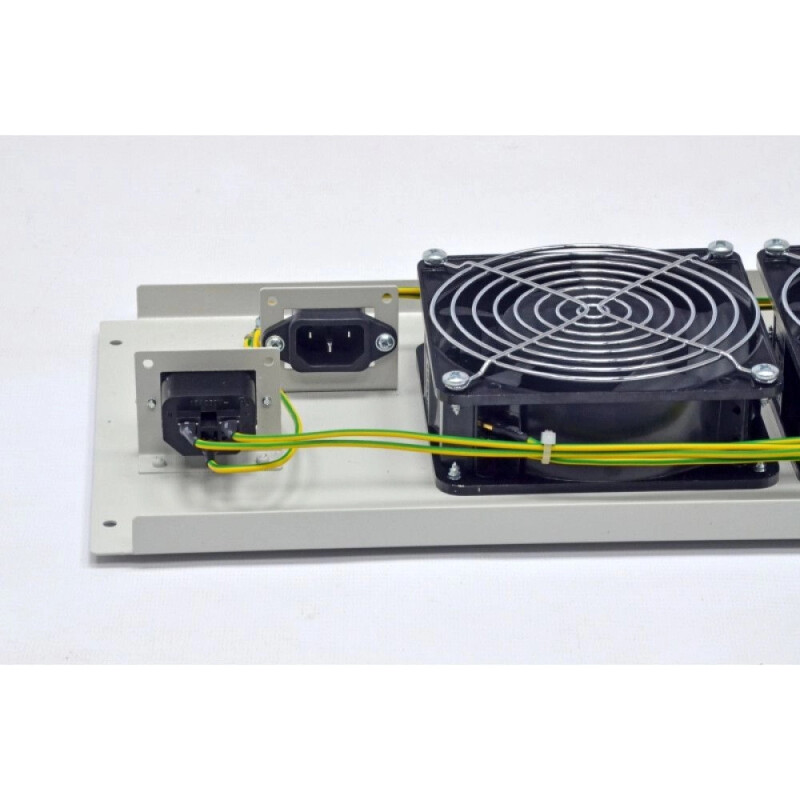 - В вентилятроном блоці використовуються вентилятори SUNNON, які зарекомендували себе высокою надійнистю, довговічністю та ефективністю. Вентилятори захищені дротовою решіткою, яка не створює завихрень та спротиву потоку повітря, що суттєво знижує рівень шуму вентиляторного блока. Сервер(и) в шафі створюють більше шумів ніж 3-х вентиляторний блок.