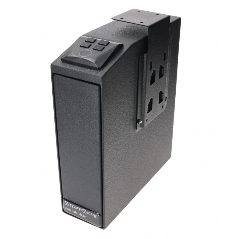 Слайдер пістолетний сейф StaffSafe Slider Gun Safe зі сталі для зберігання пістолета та магазину. Декілька варіантів відкриття сейфа, а саме: відбиток пальця, код, ключ.