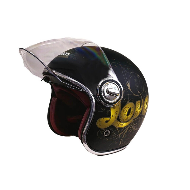 Відкритий класичний шолом 3/4 у ретро стилі виконаний із міцного ABS пластику, відрізняється малою вагою та гарною шумоізоляцією. Має висувний внутрішній тонований візор. Ударопоглинаюча капсула шолома зроблена зі спіненого полістиролу EPS. М'яка знімна внутрішня підкладка виконана з гіпоалергенних матеріалів (штучна шкіра, сітка, велюр), допускає прання при 30 градусах.