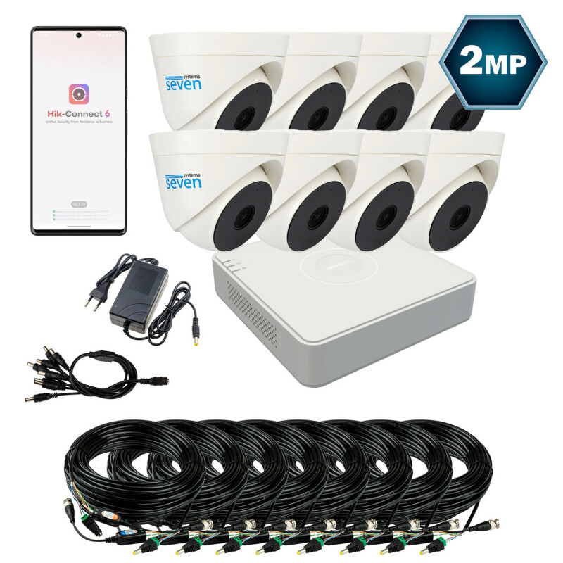 Комплект внутрішнього спостереження SEVEN HK-7118IW-2MP є універсальним і може бути застосований для найрізноманітніших завдань відеоспостереження. За допомогою готового комплекту відеоспостереження можна значно підвищити безпеку житлових приміщень, так і комерційних або промислових об'єктів. Камери, що входять до складу комплекту, захищені від вологи за стандартом IP55 і підходять для встановлення всередині приміщення.