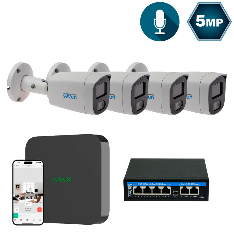 Живлення комплекту відеоспостереження на 4 камери AJAX AX-IP3624OW-5MPIP-камери SEVEN IP-7225PA white підтримують живлення PoE використовуючи Ethernet кабель, значно зменшуючи витрати на проводку і спрощуючи монтаж системи. Живлення камер даного комплекту здійснюється за допомогою PoE світча SEVEN P-7324.