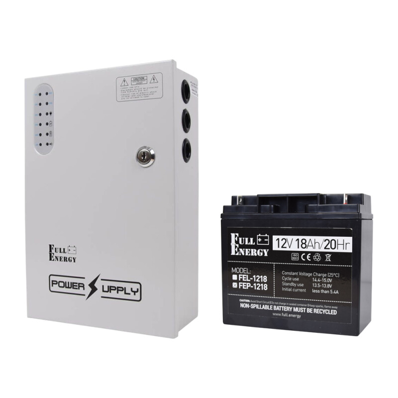 Комплект блок безперебійного живлення Full Energy BBG-1210/8 з акумулятором 12В 18А·год Full Energy FEP-1218 призначений для забезпечення надійного і стабільного електроживлення різного устаткування, що вимагає постійної напруги 12В. Цей пристрій особливо актуальний для систем сигналізації, відеоспостереження, контролю доступу та зв'язку, де стабільність і безперервність живлення дуже важливі. Комплект працює від мережі, підтримуючи акумулятор у буферному режимі, і автоматично перемикається на резервне живлення в разі вимкнення електроенергії.
