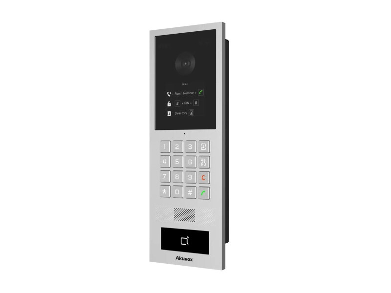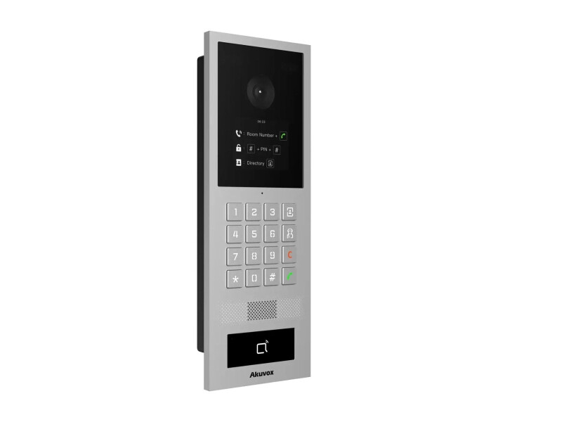 Кольорова відеопанель S532 із зчитувачем RFID-карток, підтримкою NFC, BLE. Призначена для багатоквартирного будинку/житлового комплексу. Колір корпусу відеопанелі – сірий.