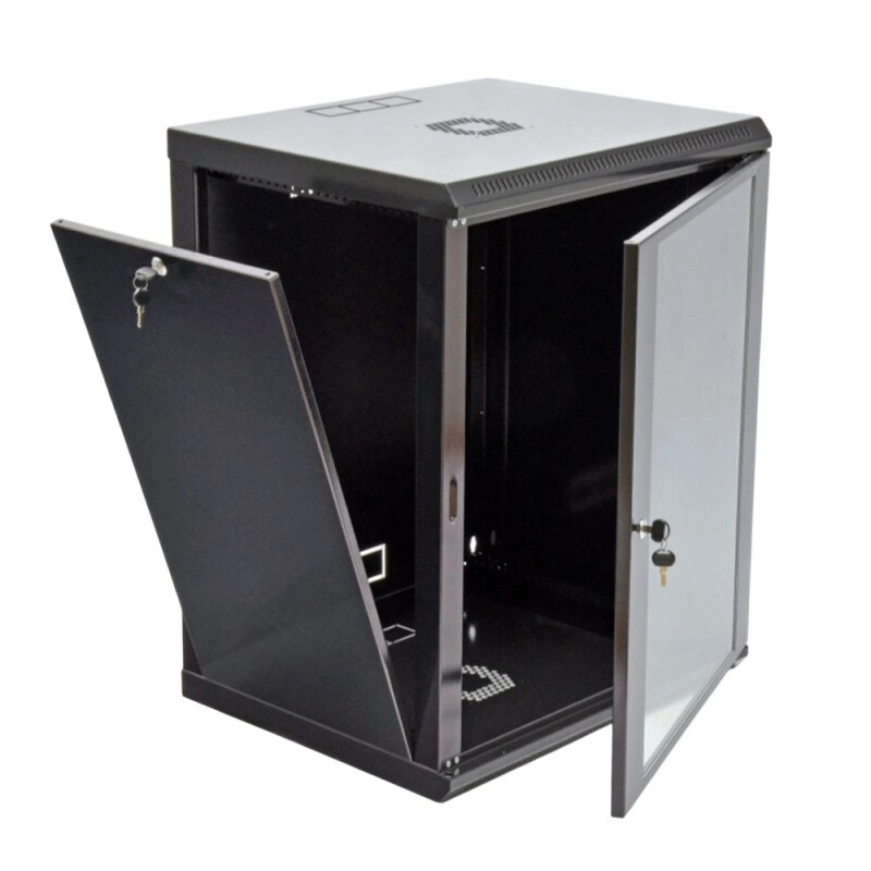 Конструкція шафи складається з даху, нижньої частини, двох бічних рамок зі змінними панелями, передніх дверей, задньої панелі та юнітових стійок. Для зручності монтажу на стіну і надійного кріплення в конструкції передбачено 4 отвори в тильній частині шафи. Передні двері фіксуються поворотно-притискним замком.
