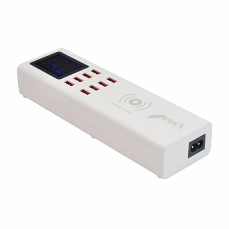 Дозволяє зарядити до 8 різних пристроїв одночасно, використовуючи при цьому одну розетку. Мережевий зарядний пристрій на 8 портів включає 8 стандартних USB порту + бездротовий зарядний пристрій. Прекрасний додаток для будь-якого робочого столу. Компактний корпус та невелика вага дозволяє знайти місце для пристрою в будь-якій сумці, завдяки чому пристрій ідеально підходить для дому, офісу та подорожей. Оснащений РК-дисплеєм із цифровою індикацією напруги живлення та струму навантаження.