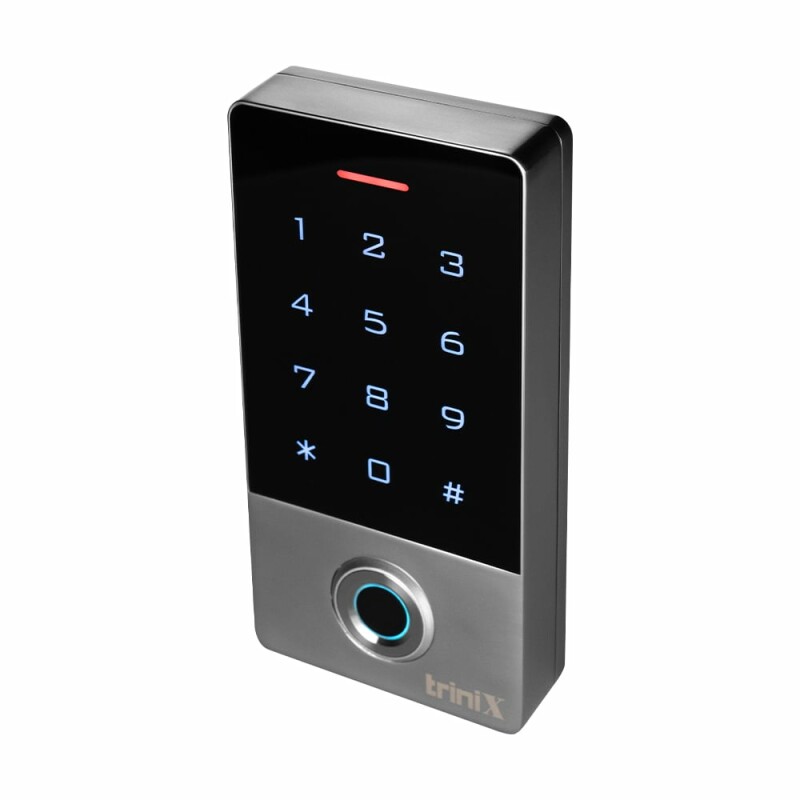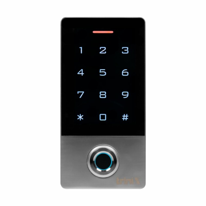 Автономна сенсорна клавіатура/контролер Trinix TRK-1101EFI, зі скануванням відбитків пальців і зчитувачем EM-Marine 125 кГц. Підтримується декілька способів доступу: за допомогою сканування відбитку пальця / коду доступу / зчитування карти. Металевий антивандальний корпус, клас захисту IP65, підходить для вуличного встановлення.