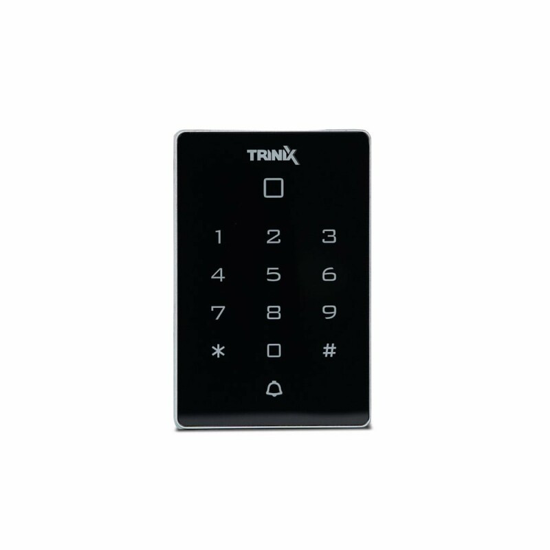 Автономна сенсорна клавіатура/контролер з WiFi, з можливістю працювати через мобільний застосунок Tuya Smart Trinix TRK-1202EW(WF), зі зчитувачем EM-Marine 125 кГц. Підтримується декілька способів доступу: за допомогою коду доступу / зчитування карти / через мобільний застосунок. Пластиковий водонепроникний корпус, клас захисту IP66 підходить для вуличного встановлення.