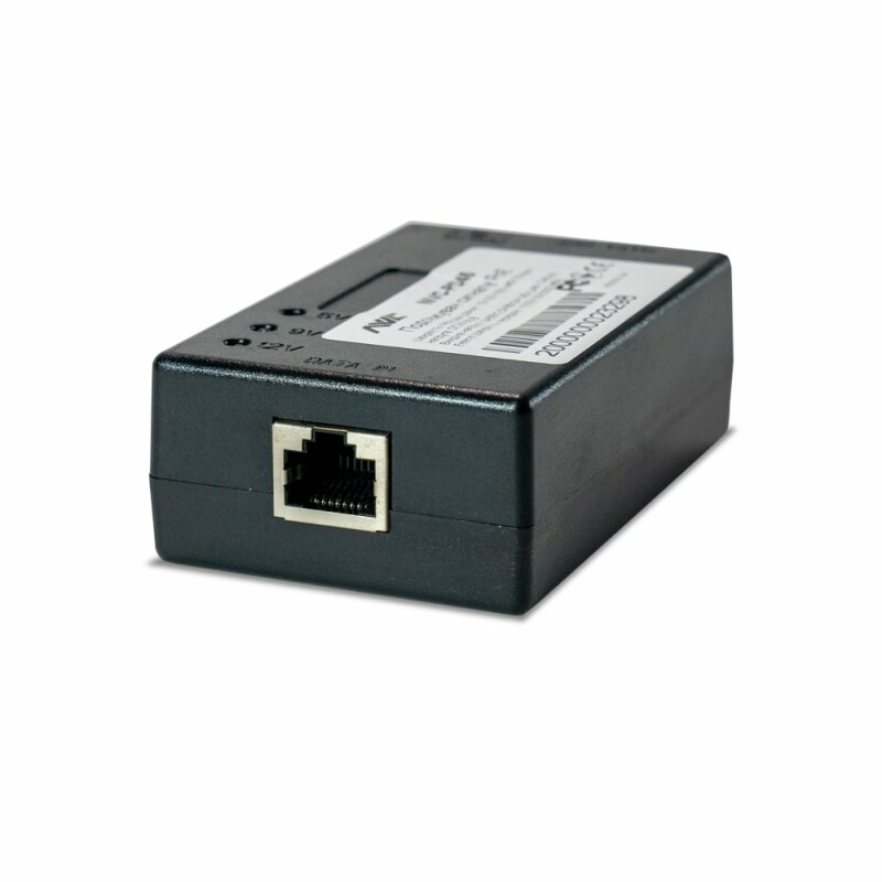 PoE-подовжувач-перетворювач 1-портовий NVC-PD45 стандарту 10/100M 802.3af/at. Порти: 1 PoE-вхід/1 LAN-вихід; 1 вихід живлення. На виході пристрою формується напруга живлення 12/9/5В – в залежності від перемикача.