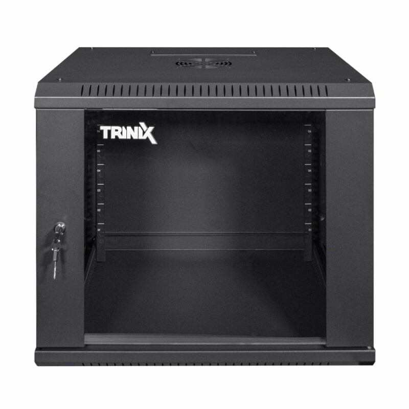 Комутаційна шафа Trinix TRX-9U/600x450x503 Black, розбірна, з дверцятами. Максимальне статичне навантаження 55 кг. Шафа зачиняється на замок, ключі у комплекті. Габаритні розміри: ширина 600 мм, глибина 450 мм, висота 9U – 503 мм.