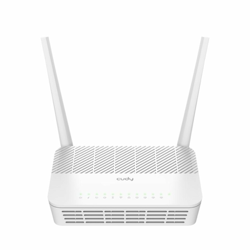 GPON/EPON, WiFi 5 дводіапазонний маршрутизатор Cudy GP1200. Інтерфейси: 1 порт PON, 4 порти LAN 10/100/1000 Мбіт/с, 2 зовнішні антени. Протоколи PON: GPON, EPON; швидкість передачі: 1.244 Gbps (GPON), 1.25 Gbps (EPON), швидкість прийому: 2.488 Gbps (GPON), 1.25 Gbps (EPON); довжина хвилі: передача 1310 нм / прийом 1490 нм; дальність передачі до 20 км. Швидкість передачі WiFi: 867 Мбіт/с на 5 ГГц + 300 Мбіт/с на 2.4 ГГц, стандарт WiFi 802.11ac/a/b/g/n.