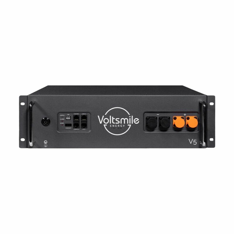 Voltsmile V5 – літій-залізо-фосфатна акумуляторна батарея напругою 48 В та ємністю 50 Аг / 2400 Втг, частина системи накопичення енергії. Максимальний струм заряду/розряду 50 А/50 А. Ресурс: 6000 циклів заряджання-розряджання. Комунікаційні порти RS485, CAN. В одну систему можна підключити до 15 акумуляторних модулів.