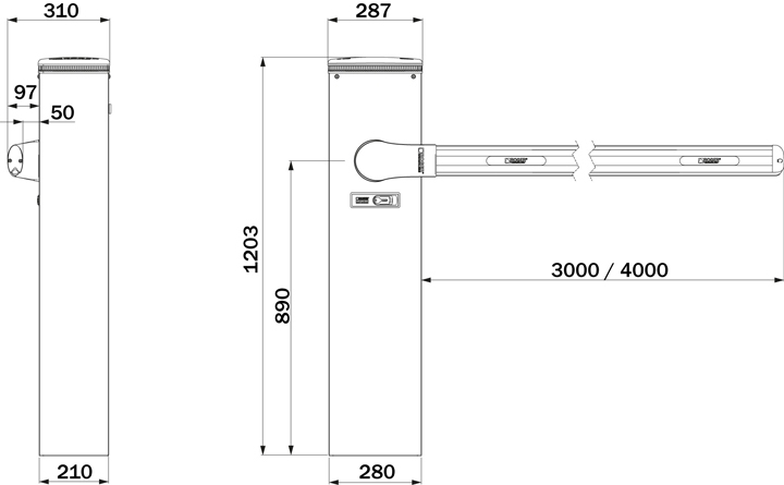 Оснащений цифровим енкодером з абсолютним позиціонуванням, вбудованим блоком управління, надійною редукторною системою та світлодіодним підсвічуванням у верхній частині тумби. Рух стріли плавний, точний і безшумний. Швидкість відкриття 2-6 секунд.