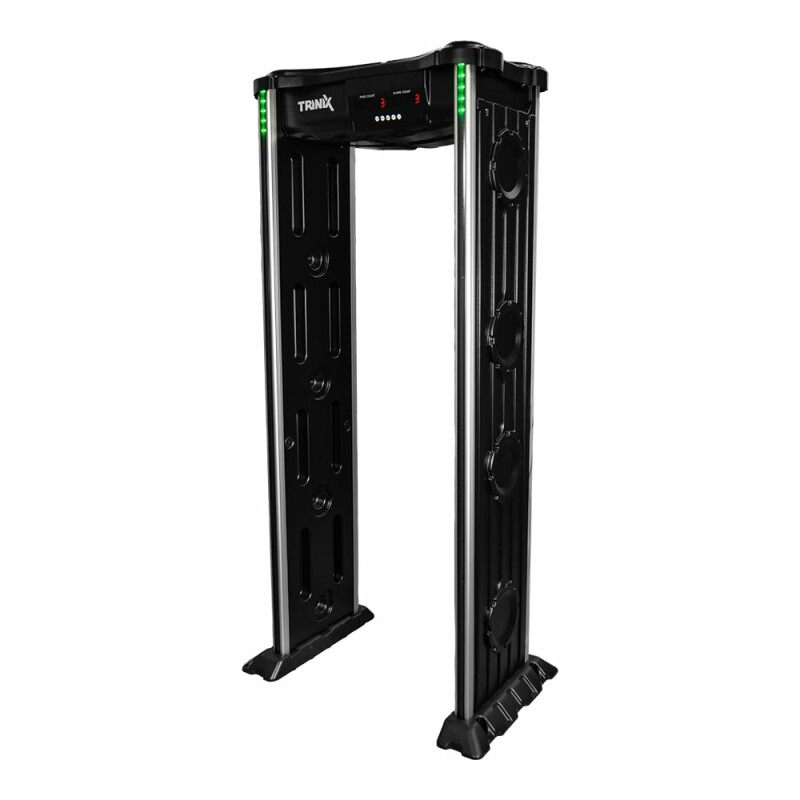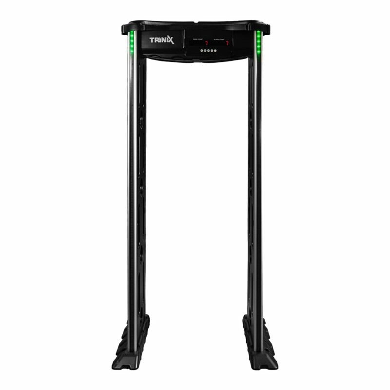 Арочний металодетектор Trinix UM500 з 6 зонами детекції та 100 рівнями чутливості, LED-екран з відображенням кількості проходів і тривог, світлодіодна та звукова індикація, лічильник проходів і тривог, захист паролем зміни параметрів. Водонепроникний корпус з міцного ABS-пластику, можливість зовнішнього використання, клас захисту IP65.