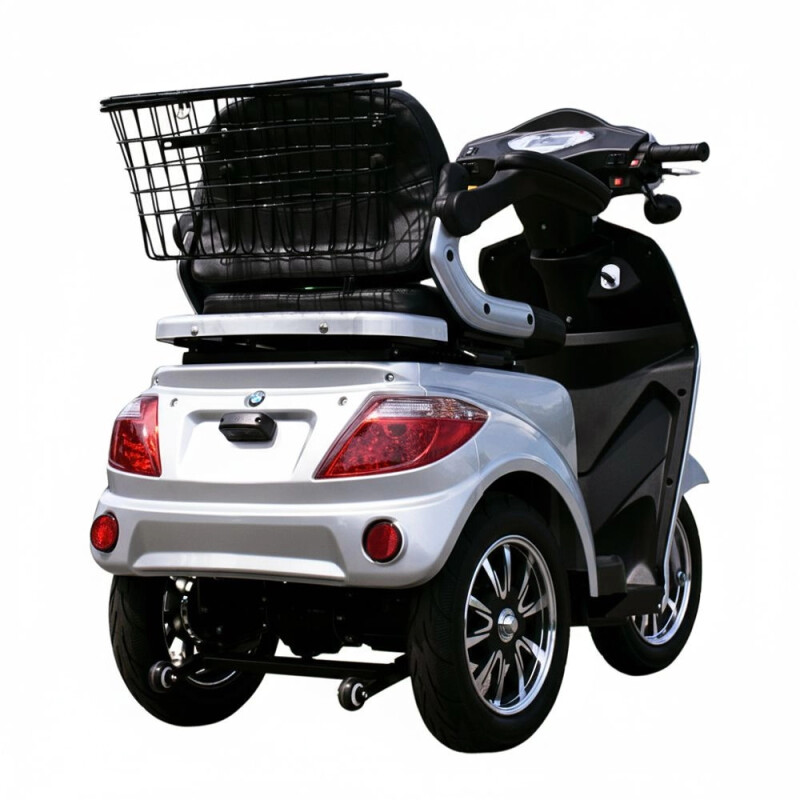 Електроскутер VISTA-2 (T408-2) Silver призначений для комфортного пересування літніх людей, забезпечуючи зручність і безпеку в управлінні. Він оснащений потужним двигуном на 1000 Вт, що забезпечує впевнений рух зі швидкістю до 25 км/год. Завдяки акумулятору ємністю 60В 20А·год, скутер здатний долати відстань від 40 до 50 км на одному заряді, що робить його зручним для повсякденного використання.