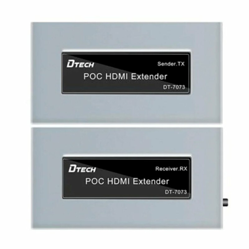 Комплект HDMI-подовжувача Dtech DT-7073 з підтримкою 1080p/60Hz. Призначений для передачі цифрового сигналу (відео/аудіо) одним кабелем вита пара САТ5е/CAT6 до 50 м.