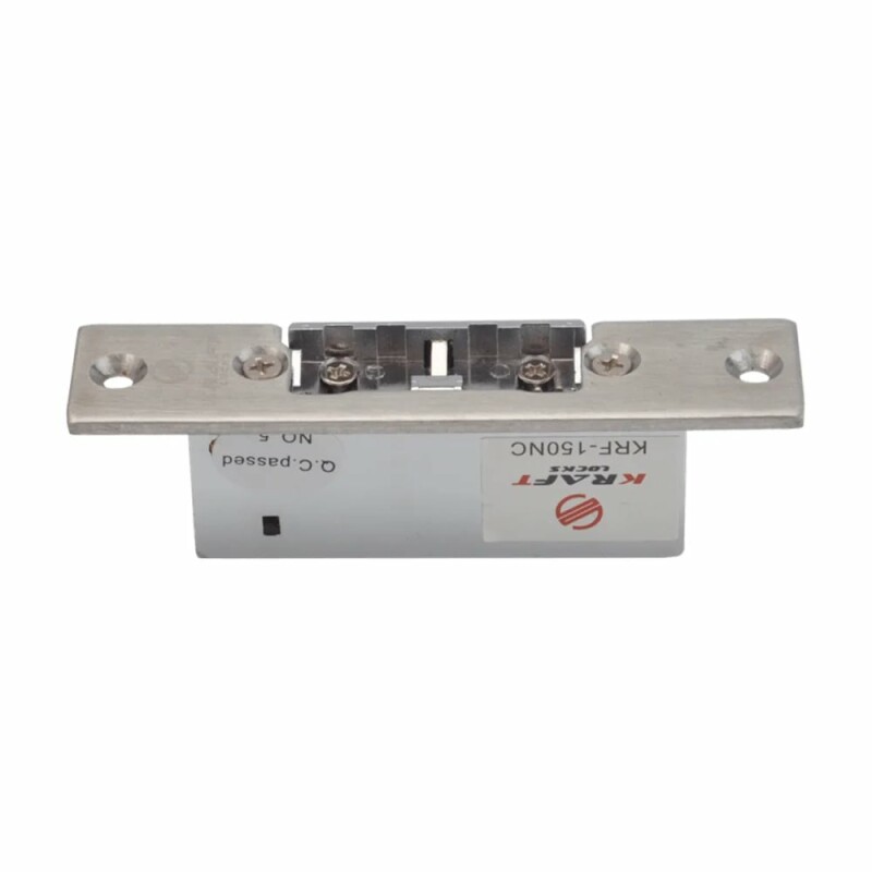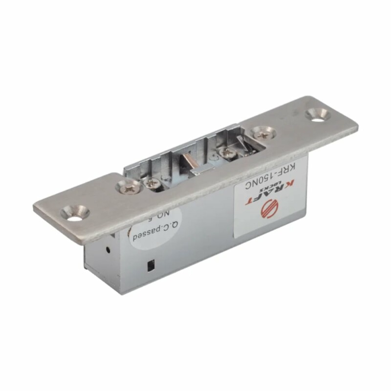 Kraft KRF-150NC – защіпка електромеханічна з функцією механічного розблокування, підійде для використання в системах контролю доступу в офісних приміщеннях. Тип контакту NC (нормально-замкнена), живлення 12 В, споживання 800 мА.