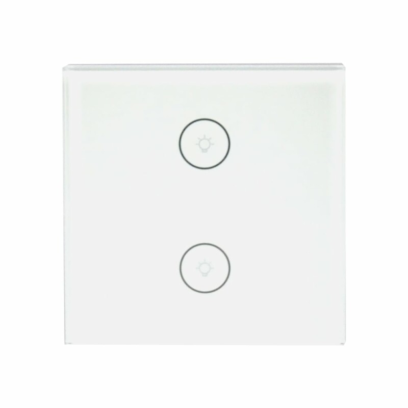 Розумний подвійний вимикач світла Trinix TRX-LS02(WiFi) з підтримкою WiFi 2.4 ГГц (IEEE 802.11b/g/n) та можливістю керування і налаштування через мобільний застосунок Tuya. Сенсорні кнопки керування. Голосове керування через Google Assistant та Amazon Alexa. Можливість встановити таймер та розклад увімкнення/вимкнення освітлення.