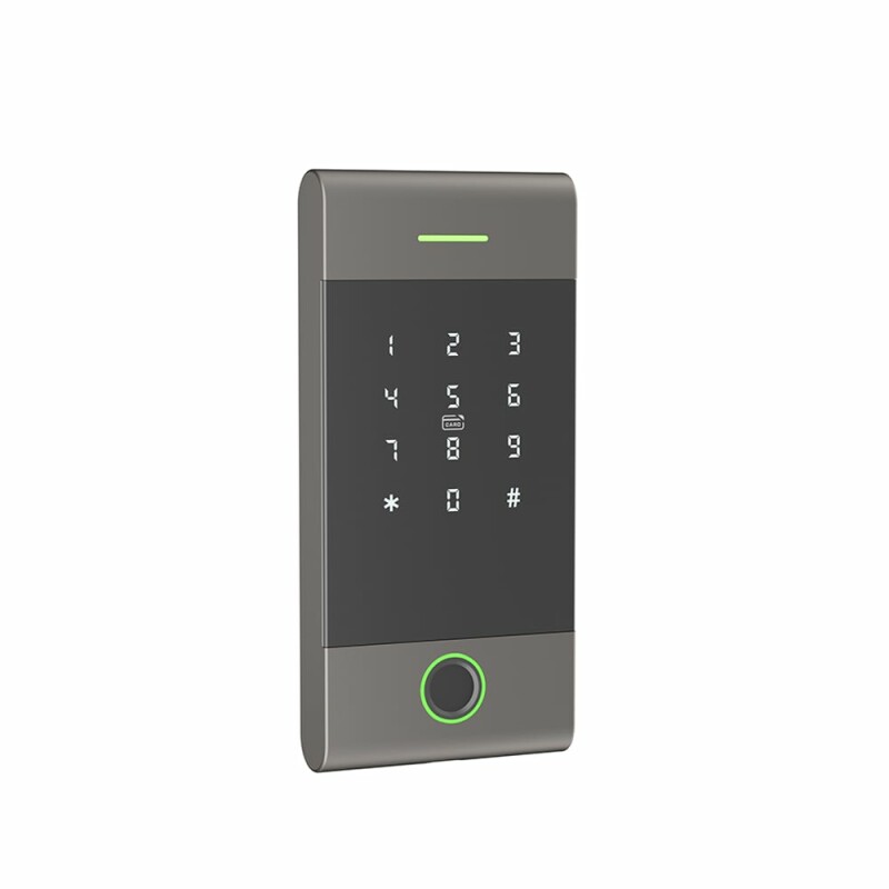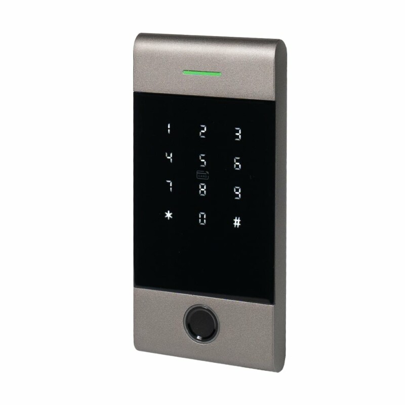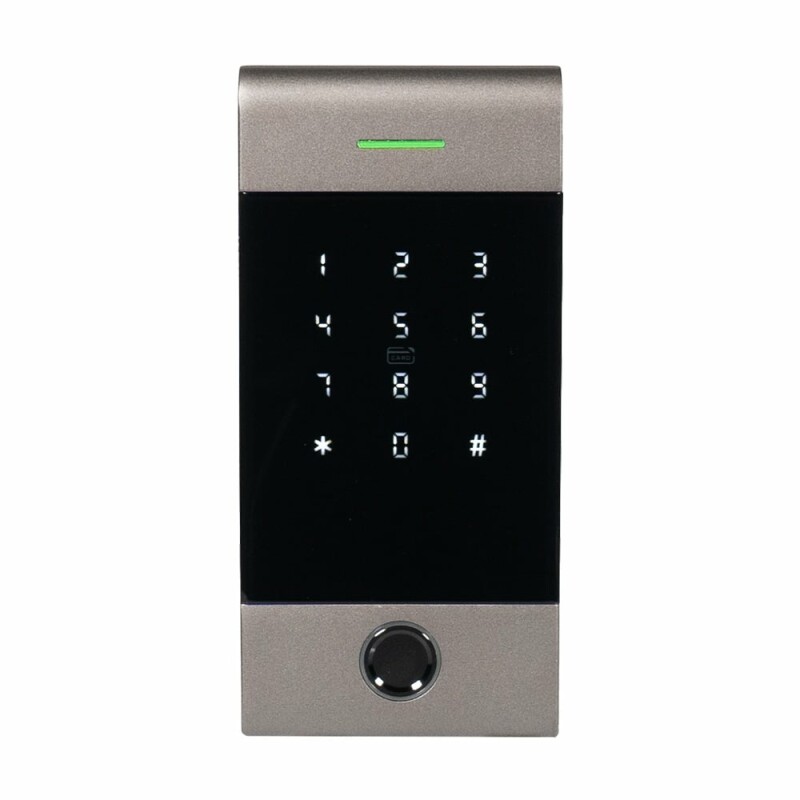 - Автономна сенсорна кодова клавіатура з контролером підтримує доступ до приміщення під охороною за допомогою декількох способів: сканування відбитку пальця / коду доступу / зчитування карти / через мобільний застосунок.