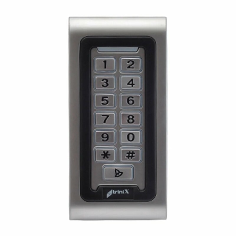 Вулична, антивандальна, водонепроникна кодова клавіатура з WiFi, з можливістю працювати через мобільний застосунок Tuya Smart Trinix TRK-800EW з металевими кнопками та вбудованим зчитувачем карт та брелоків стандарту EM-Marine (125 кГц), а також контролером на одне реле для використання у системах контролю доступу. Підтримується декілька способів доступу: за допомогою коду доступу / зчитування карти / через мобільний застосунок Tuya Smart. Металевий антивандальний водонепроникний корпус, клас захисту IP68, підходить для вуличного встановлення.