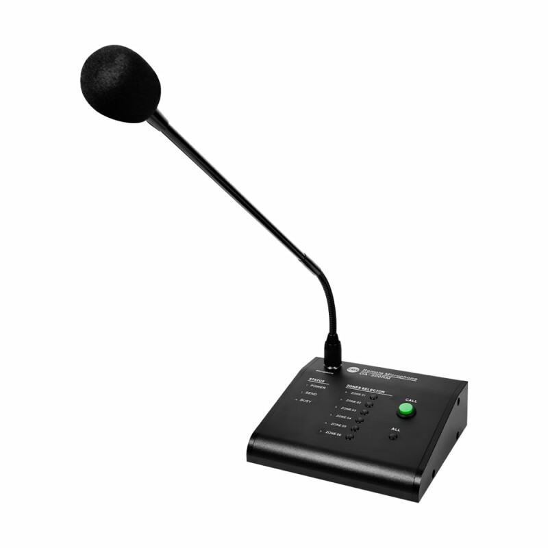 Пейджинговий мікрофон використовується разом з підсилювачами, для голосових повідомлень оператора у системах фонового оповіщення. Може керувати 6 зонами – кожною окремо чи всіма одночасно, з пріоритетом над фоновою музикою.