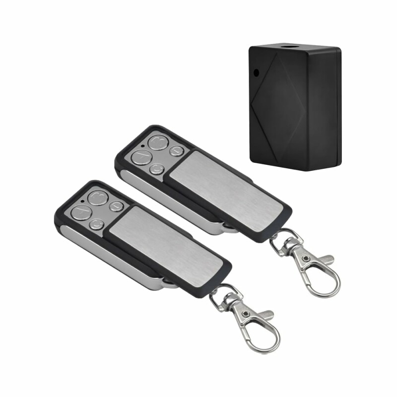 Одноканальний комплект радіокерування Trinix TRX-101RK, складається з радіоконтролера-приймача і двох брелоків-передавачів з чотирма кнопками, робоча частота 433.92 МГц, дальність передачі до 100 м. Максимальна ємність памяті приймача – 80 передавачів.