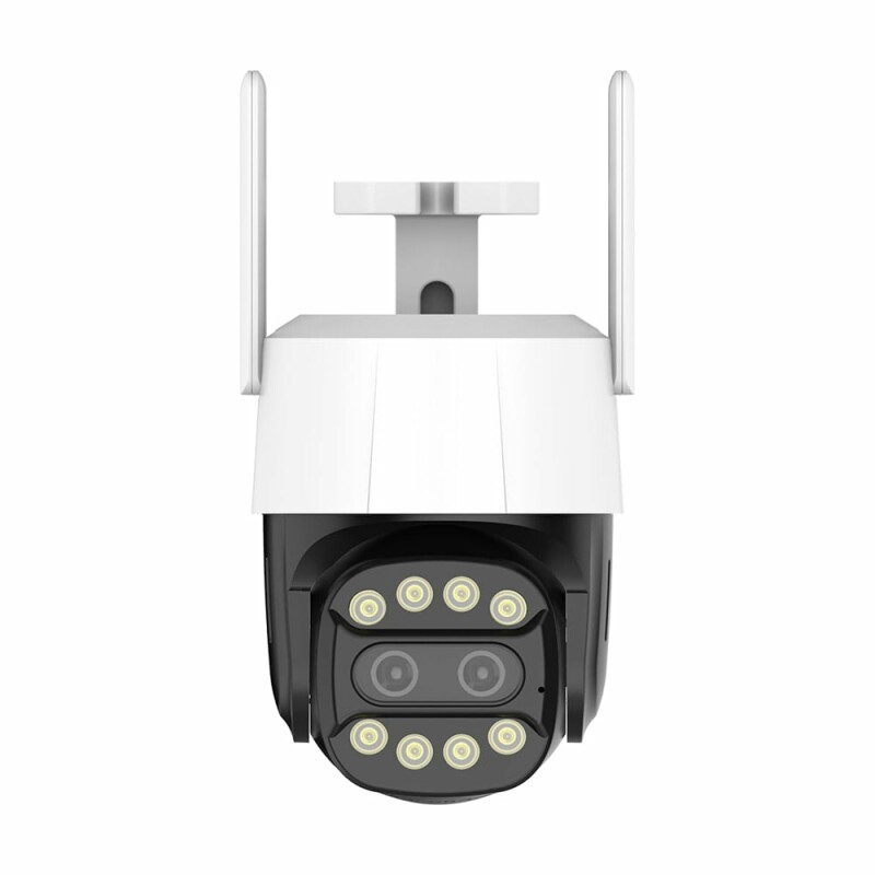 IP-відеокамера поворотна Light Vision VLC-9284WI10Z/2C (Camhi Pro) з підтримкою WiFi та віддаленого моніторингу через застосунок CamHipro для iOS/Android, з подвійним об’єктивом роздільною здатністю 8 Мп + 8 Мп (3840*2160 x2) і фокусною відстанню 3.6 мм + 8 мм, автоматичним перемиканням між об’єктивами залежно від відстані. Кут повороту до 355°, кут нахилу до 90°, відеокодек H.265. Вбудовані мікрофон і динамік, двосторонній аудіозв'язок. Підтримка виявлення людини, смарт трекінгу. Запис на карту пам’яті до 128 ГБ (купується окремо). Живлення DC 12 В. Пластиковий корпус з класом захисту IP66.