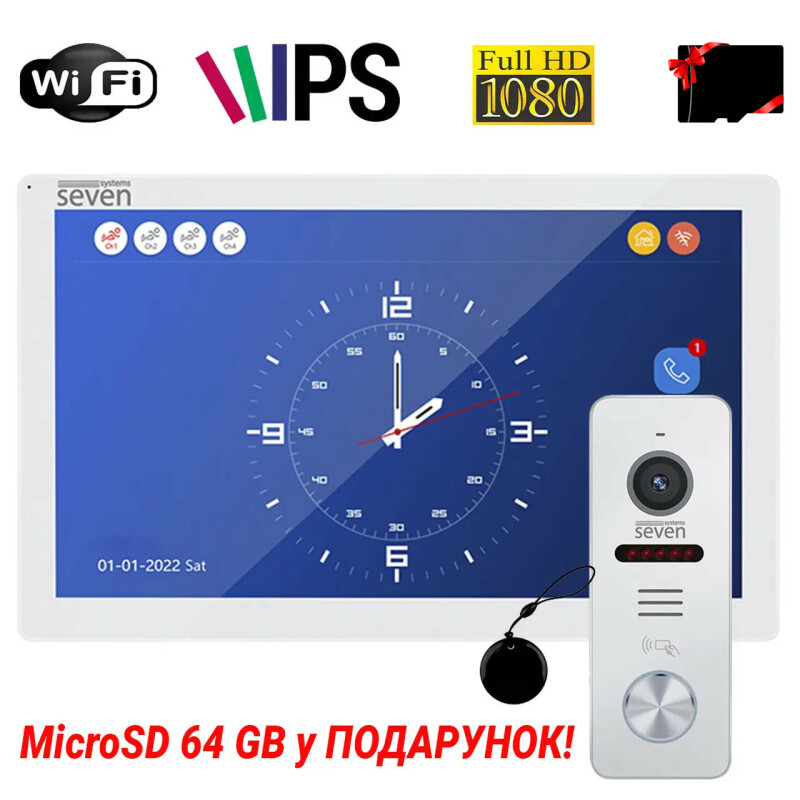 Комплект Wi-Fi відеодомофону SEVEN DP-7517/02Kit white для квартири, приватного будинку чи офісу