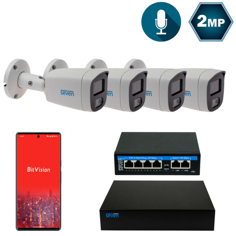 Комплект SEVEN IP-7222W4-2MP готовий для самостійної установки, так як включає в себе всі необхідні компоненти для створення повноцінної системи відеоспостереження.
