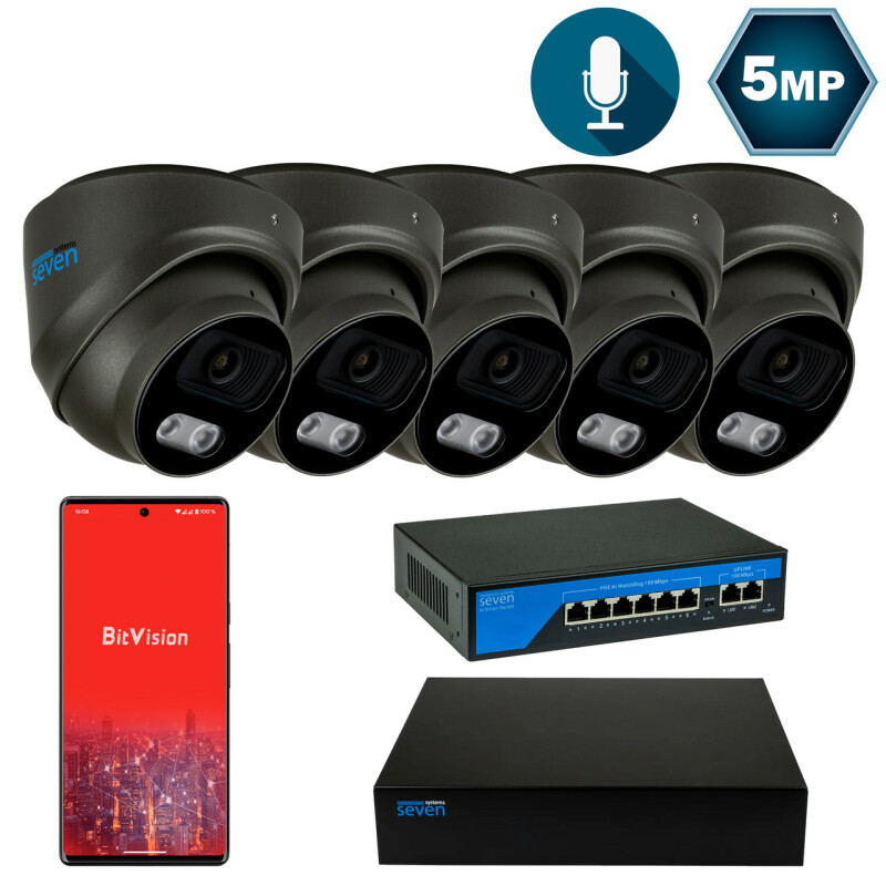 Camsecurity - магазин современных технологий комфорта и безопасности\\Комплект відеоспостереження на 5 купольних 5 Мп IP-камер SEVEN IP-7215B5-5MP