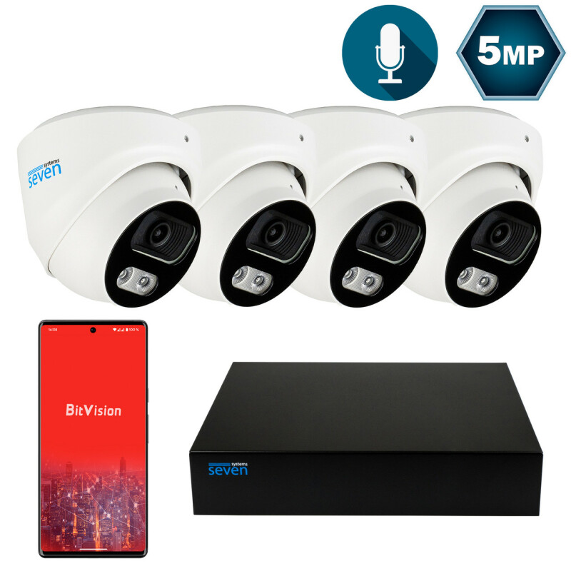 Комплект відеоспостереження на 4 купольні 5 Мп IP-камери SEVEN IP-7215W4P4-5MP