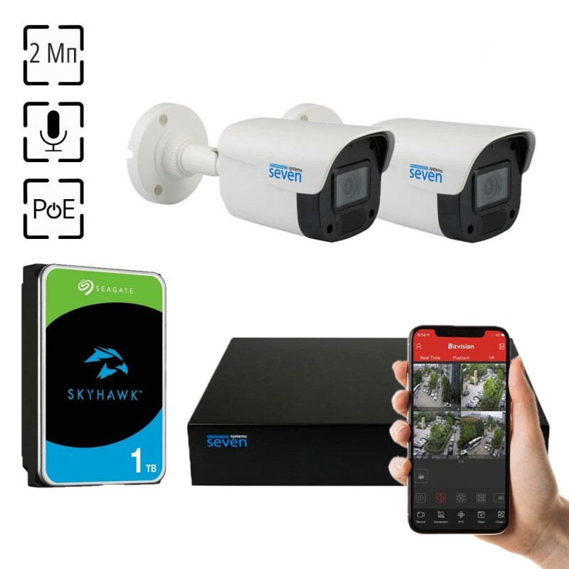 Camsecurity - магазин современных технологий комфорта и безопасности\\Комплект "Встанови сам" IP-відеоспостереження 2 Мп на 2 вуличні камери SEVEN 2B2KIT з жорстким диском на 1TB