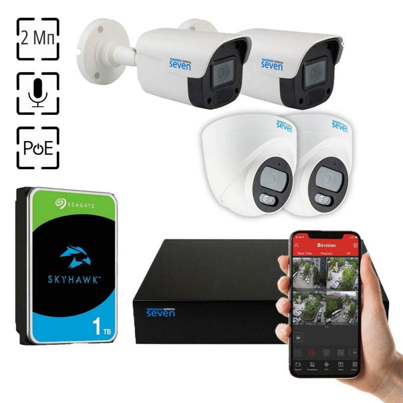 Комплект "Встанови сам" IP-відеоспостереження 2 Мп на 2 вуличні та 2 внутрішні камери SEVEN 2D2B2KIT з жорстким диском на 1TB