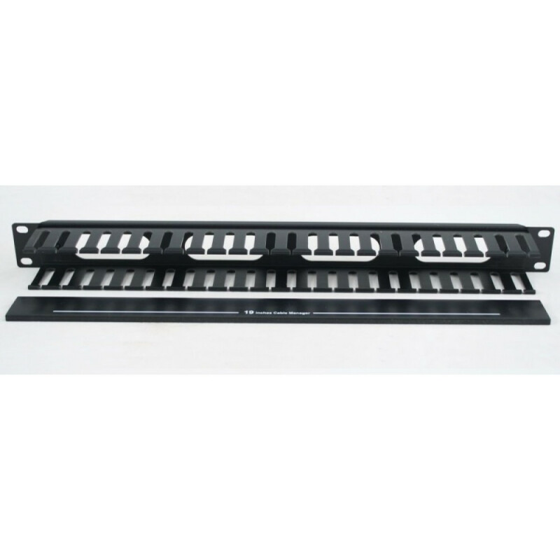 Кабельний організатор CMS 1U з кришкою чорний використовується для упорядкування підключених патч-кордів між оптичними, мідними патч-панелями і комутаторами, роутерами, серверами.