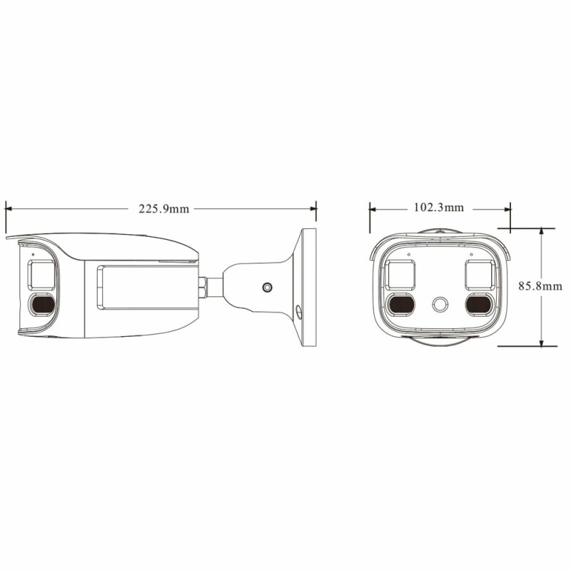 IP-відеокамера панорамна TVT TD-9482E3B-DP з 2 об’єктивами на 4Мр, з фокусною відстанню 2.8 мм x2 і кутом огляду 180°. ІЧ-підсвічування до 30 м та LED-підсвічування до 20 м. Дана модель оснащена такими функціями відеоаналітики як детекція облич, виявлення людей/транспортних засобів, підрахунок цілей, теплова карта, вторгнення в зону, що охороняється, метадані тощо. Можливе живлення через PoE.