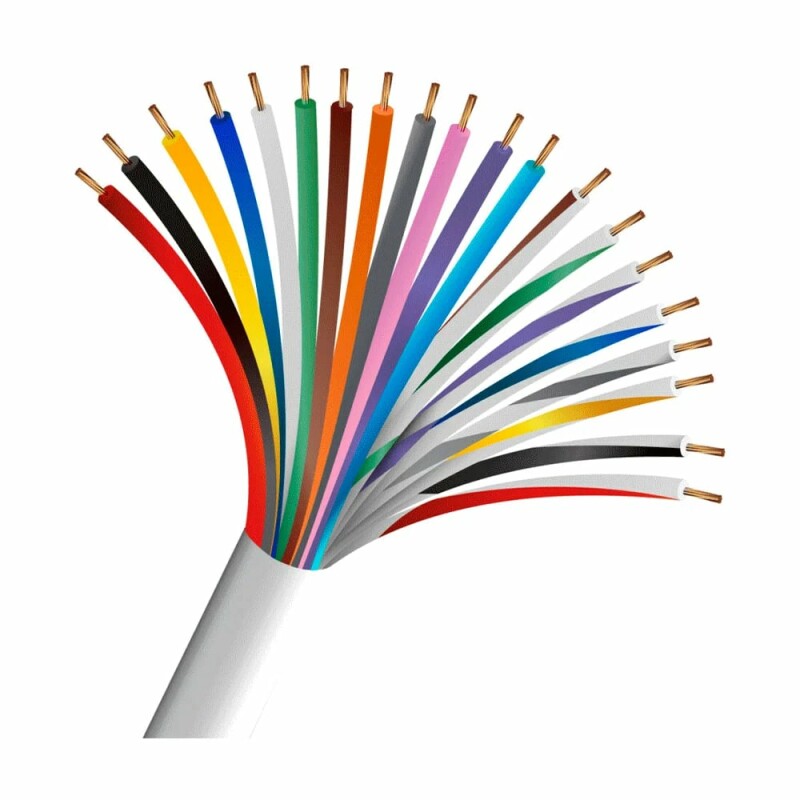 Кабель сигнальний, 20 жил з біметалу ССA – алюмінієвий сплав покритий міддю – діаметром 0.22 мм, неекранований, оболонка PVC-пластикат білого кольору, опір жили 14.5 Ом/100 м, бухта 100 м